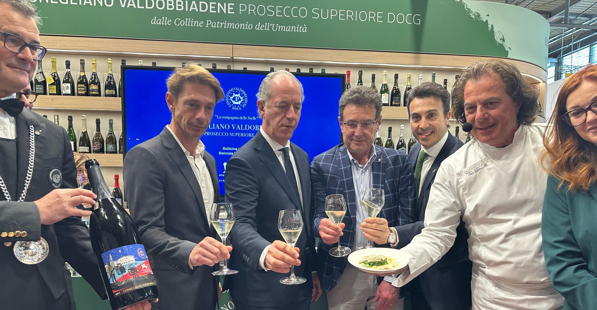 The event was hosted by Il Gusto magazine director Eleonora Cozzella and featured several distinguished guests, including Luca Zaia, President of the Veneto Region; Giorgio Pasotti, actor and brand ambassador for Conegliano Valdobbiadene Prosecco DOCG; and Franco Adami, President of the Consortium.