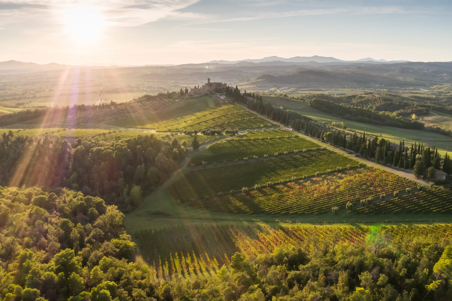 The current fame of the castle, which changed from Poggio alle Mura to Banfi, is due to its purchase by the American brothers John and Harry Mariani in 1983. It was then restored to its former glory through patient and skilled restoration and conservation work. You may wonder why Banfi, given that the owners’ surname is Mariani (today, specifically, it belongs to Cristina Mariani-May). Here’s the story: the father of the two brothers, Giovanni, had an aunt who was a wine expert named Teodolinda Banfi. In her honor, he founded Banfi Vintners, a leading company in the importation of Italian and French wines in the USA. And naturally, given the success of that name, it was chosen for the new venture in Italy, where they wanted to realize their dream of “the largest project ever undertaken in the production of quality wines in Italy.”