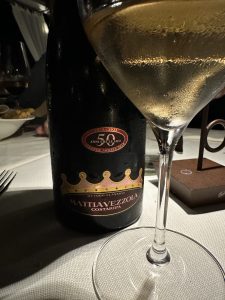 Mattia Vezzola Brut Rosé: This sparkling wine captivated me immediately. Vezzola’s love affair with sparkling wines began in 1972, during his first trip to the Champagne region. There, he understood the value of the symbiosis between tradition and innovation and set the course for his sparkling wine vocation. Thus, the idea of an “ancient” classic method was born, seductive and feminine in elegance and harmony, refined and soft, with a persistent and extremely fine effervescence, almost reminiscent of the lightness of a silk scarf.