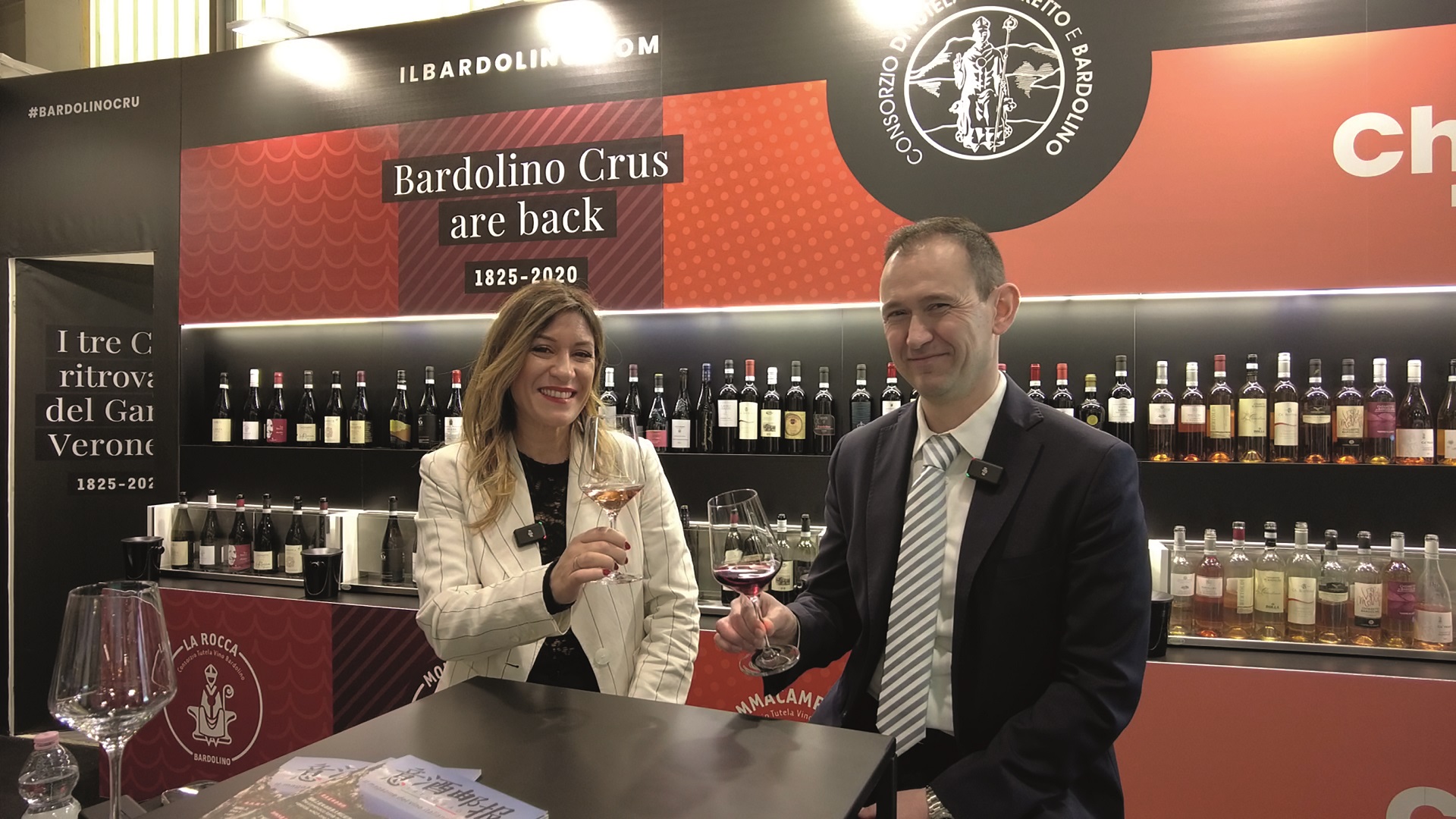 -Friends who love Italian wine, here we come. We are at Vinitaly with the new President of the Bardolino Association. Welcome everyone!